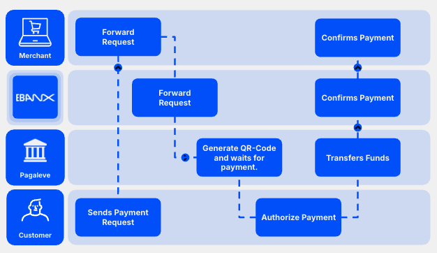 Pagaleve enables installment payments through PIX for online purchases in Brazil. Here's how the process works when integrated with the EBANX API: