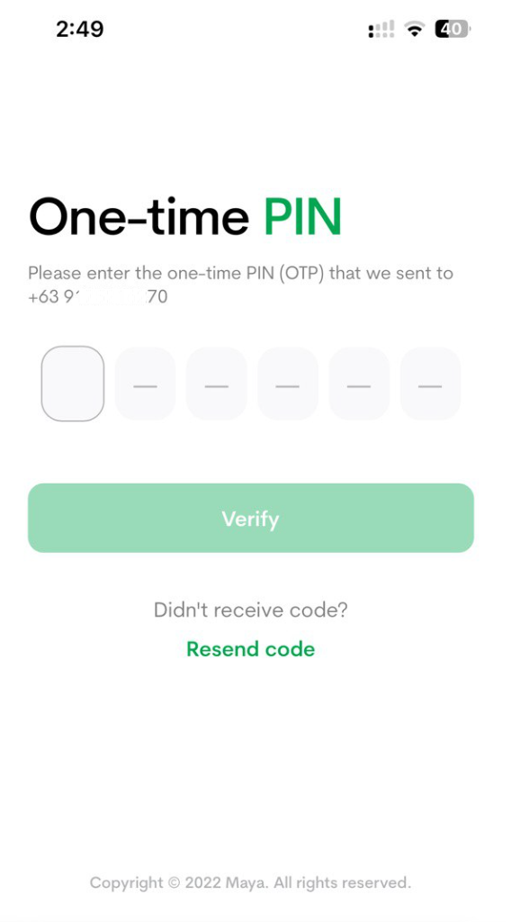 - The customer authenticates by entering an OTP (One-Time Password) linked to their Maya account.